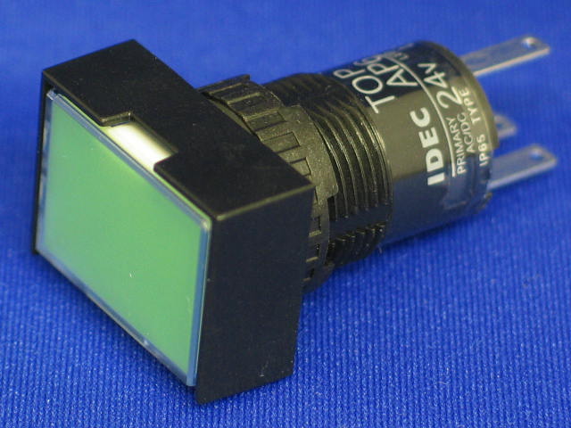 LED照光押ボタンスイッチ 正角形 モメンタリ形 フィルム・コモン対応形 AC/DC24V 接点構成:1c 照光色:緑 1,880